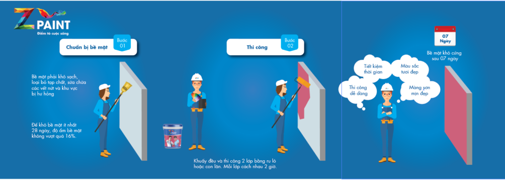 – Sử dụng 1 lớp sơn lót chuyên dụng của Z-Paint đối với bề mặt bị phấn hóa hay có độ bám dính kém.