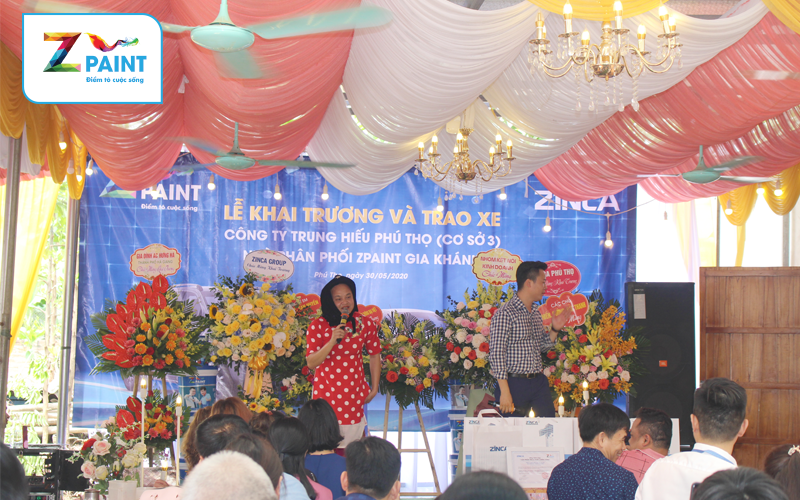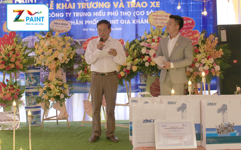 Tham dự buổi lễ có Ông Phạm Xuân Bình – Chủ tịch HĐQT Tập đoàn ZINCA, Ông Trần Trung Hiếu – Giám đốc điều hành ZPaint Việt Nam, Ông Nguyễn Ngọc Thành – Phó Giám đốc điều hành ZPaint Việt Nam cùng với Đại diện Nhà phân phối ZPaint tại thị trường Phú Thọ: Công ty Trung Hiếu Phú Thọ, NPP Gia Khánh cùng đông đảo khách hàng là các Doanh nghiệp và Cá nhân đến tham dự.